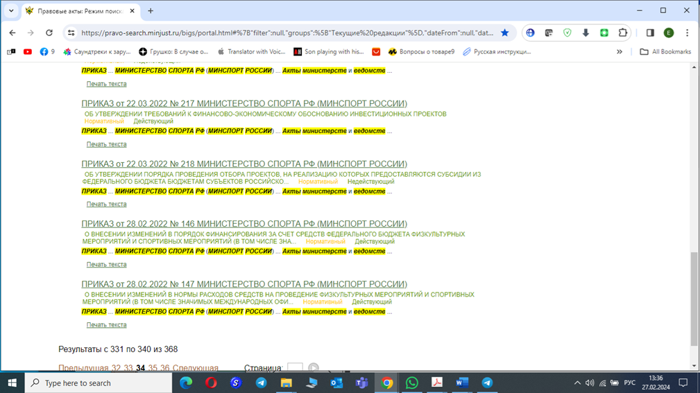 Кстати в тот же день Минспора РФ выпустило Приказ № 157 от 01.03.2022 года о государственной аккредитации Федерации легкой атлетики России. Его тоже нет на скриншоте.