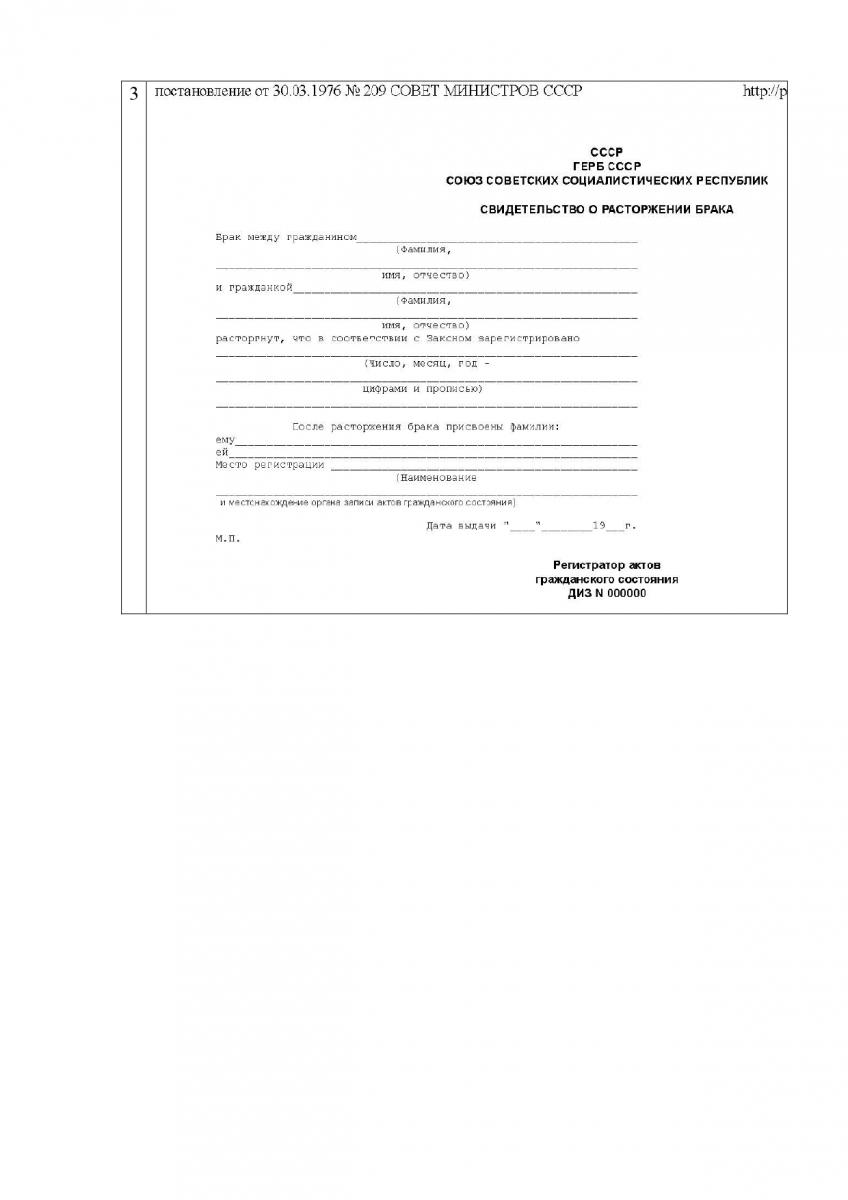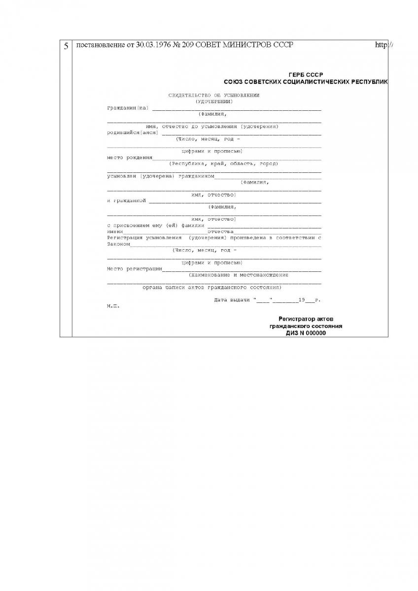 постановление от 30.03.1976 № 209 СОВЕТ ОБ УТВЕРЖДЕНИИ ФОРМ СВИДЕТЕЛЬСТВ О РЕГИСТРАЦИИ АКТОВ ГРАЖДАНСКОГО СОСТОЯНИЯ, ПРЕДНАЗНАЧЕННЫХ ДЛЯ ИСПОЛЬЗОВАНИЯ ЗА ГРАНИЦЕЙ |