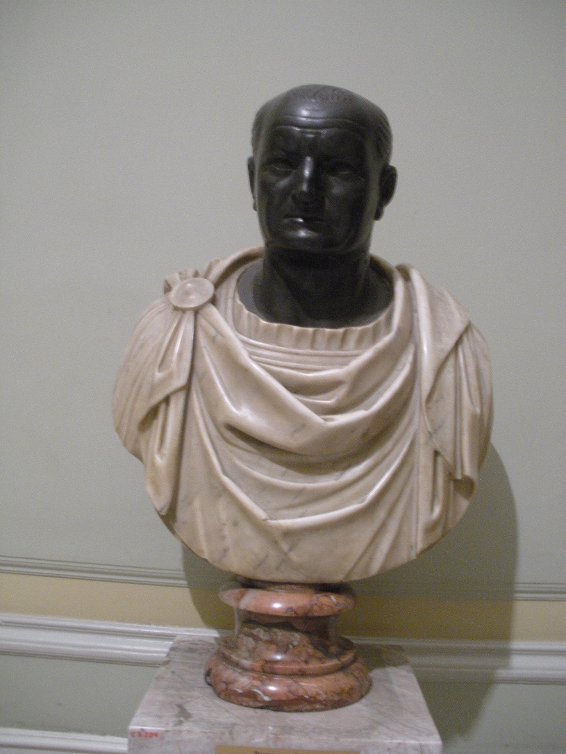 Basalt Bust of Vespasianus Flavius. Roman Emperor, 69 AD to 79 AD. He was succeeded by his sons Titus (79–81) and Domitian (81–96). Construction of the Flavian Amphitheatre, better known as the Colosseum, was begun by Vespasian, and ultimately finished by his son Titus. The State Hermitage, St. Petersburg (https://www.flickr.com/photos/sftrajan/2986308499/in/photostream/ )