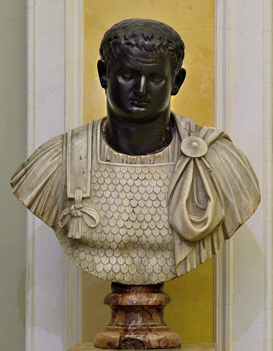 Император Тит Флавий Веспасиан (Imperator Titus Flavius, 39-81 гг. н.э.), вошёл в историю под личным именем Тит — 10-й Римский император, и после смерти был обожествлён (о бюсте - сын императора Веспасиана, царствовал с 79—81 г. Голова, из черного базальта, приставлена к груди из каррарского мрамора, новейшей работы. Базальт. Инв. № А296. Санкт-Петербург, Государственный Эрмитаж - https://www.shutterstock.com/editorial/image-editorial/st-petersburg-russia-aug-2009-1013275m )