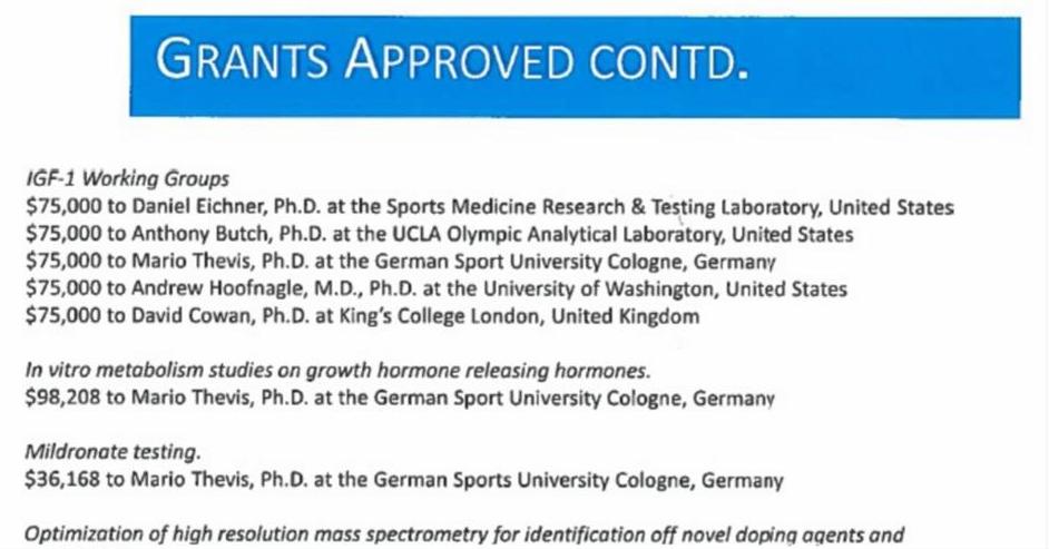 По информации издания, в конце 2014 года по результатам проверки 8300 случайных образцов мочи препарат был обнаружен в 182 случаях, и все анализы принадлежали спортсменам из Восточной Европы. Это исследование послужило основанием для включения мельдония в список запрещенных веществ WADA с 1 января 2016 года.