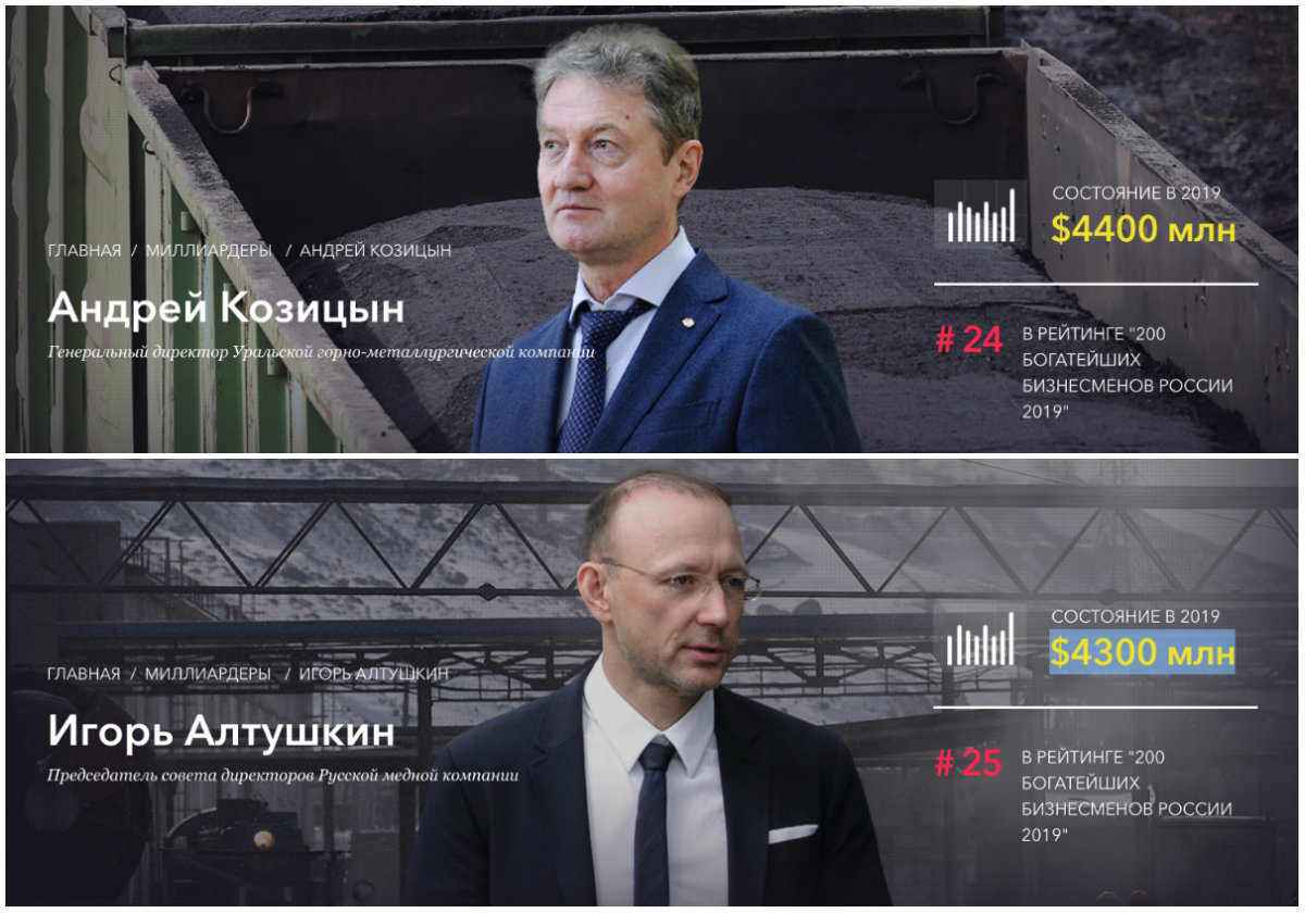 В 2019 году Forbes определил предпринимателей Андрея Козицына и Игоря Алтушкина на 24 и 25 места в своем рейтинге самых богатых бизнесменов страны.