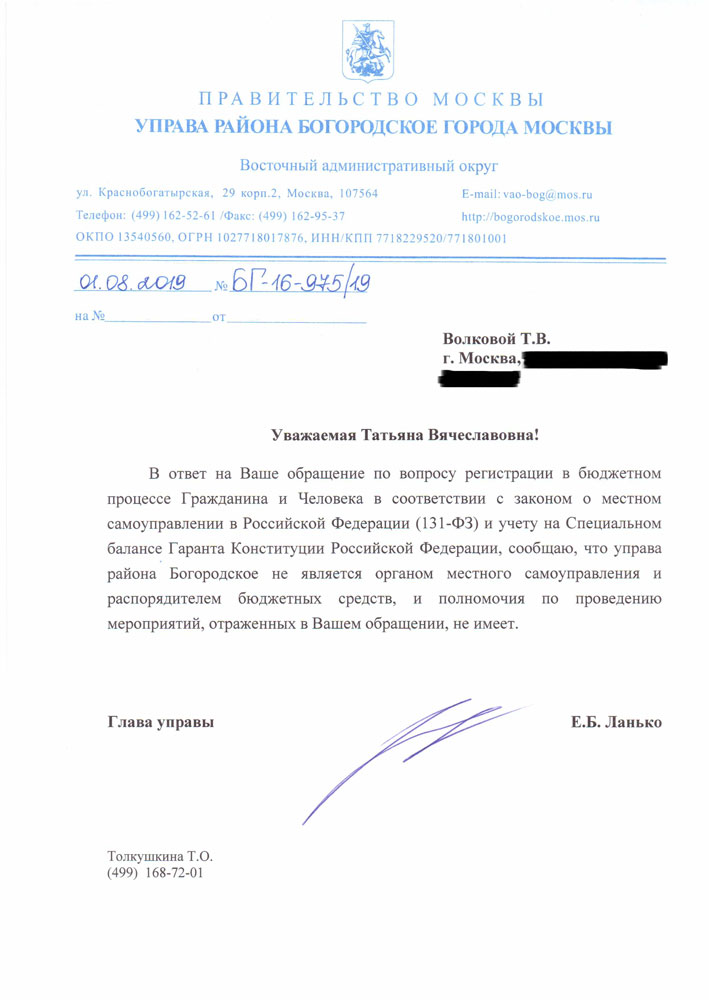 2. Или писать - Главе администрации Курчатовского района, распорядителю бюджета Курчатовского района г. Челябинска на плановый период 2020 года. - т.е. лицу, на которое написана оферта.