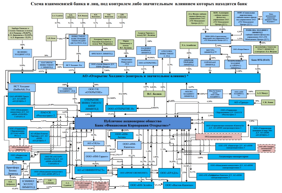 На этом фоне интересно посмотреть, как выглядит структура следующего кандидата на "вылет из премьер лиги" - пока еще совмещающего политические и финансовые функции банка Открытие: