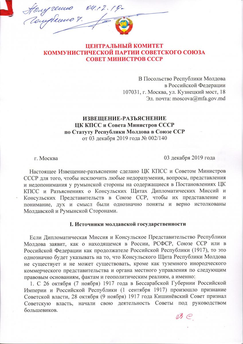 Публикуемый текст содержит ссылки на оригинальные документы руководства Молдовы (выделены курсивом), орфография оригиналов сохранена.