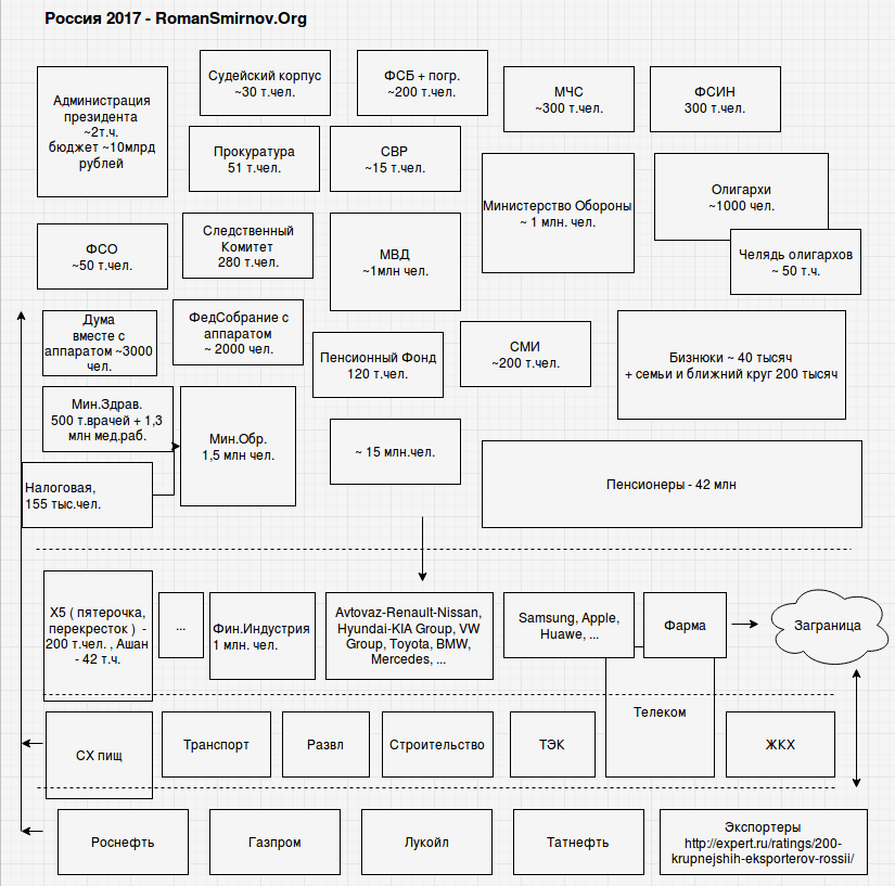 Сейчас у нас отрасли и подотрасли поделены между несколькими сотнями людей, семей, группировок и т.д.