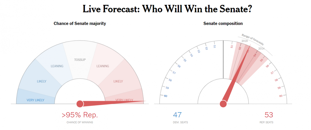В этом цикле почти вся борьба шла на «территории» демократов. 42 места республиканцев не были затронуты на этих выборах, и им нужно было защищать/захватывать самый минимум мест.