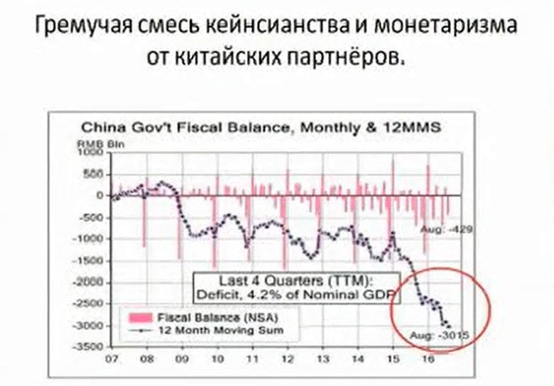 Это может сказать только об одном — насколько напугано китайское руководство, насколько мощнейшие стимулы оно использует. Отношение долга к ВВП в Китае превысило уже 300%. Это при том, что в конце 2014 года маржинальная эффективность долга в Китае стала отрицательной. Вы увеличиваете долговую нагрузку, а экономика отвечает отрицательным ростом. Поэтому, в Китае сейчас, на мой взгляд, абсолютно патовая ситуация.