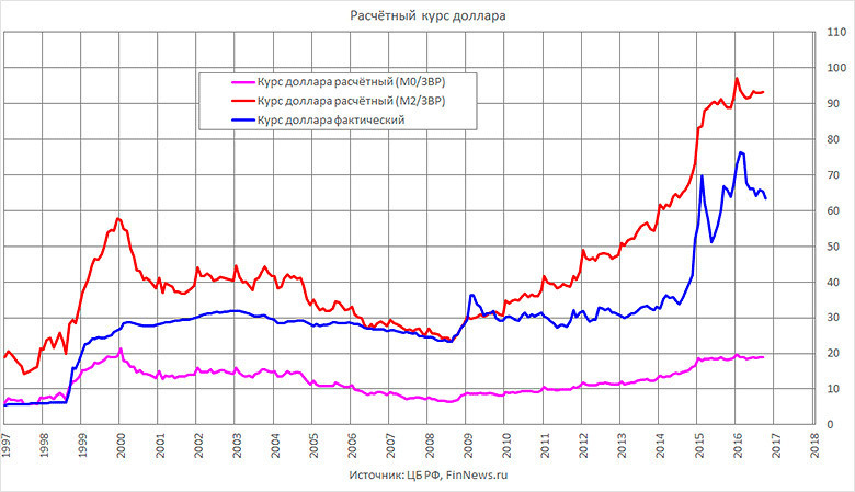 В данный момент в рублёвых облигациях сидит огромное количество нерезидентов. ЦБ оценивает в 28-29 млрд долларов. А по объёму ещё больше, чем было в декабре 2014 года. Что произойдёт? [Например], Deutsche bank кверху всплывёт. Короче, кто-то кого-то напугает. Поскольку все сидят с огромным плечом, кого-то самого наглого вынесет первым — и понеслась. За ним будут выносить всех остальных. И эти фонды, которые купили рублёвый долг, ломанутся в одну дверь. То есть продаём облигации, продаём рубль, покупаем доллары. Поскольку их больше, а у ЦБ мандат вообще ничего не делать (курс плавающий теперь, потому что денег нет), рубль спокойно, без всяких интервенций, улетает в стратосферу. Где-нибудь до 100. Набиуллина заикалась как-то о равновесном курсе рубля в районе 92. Это было в 2015 году. Если вы возьмёте агрегат М2 и разделите на ЗВР, то примерно так и будет.