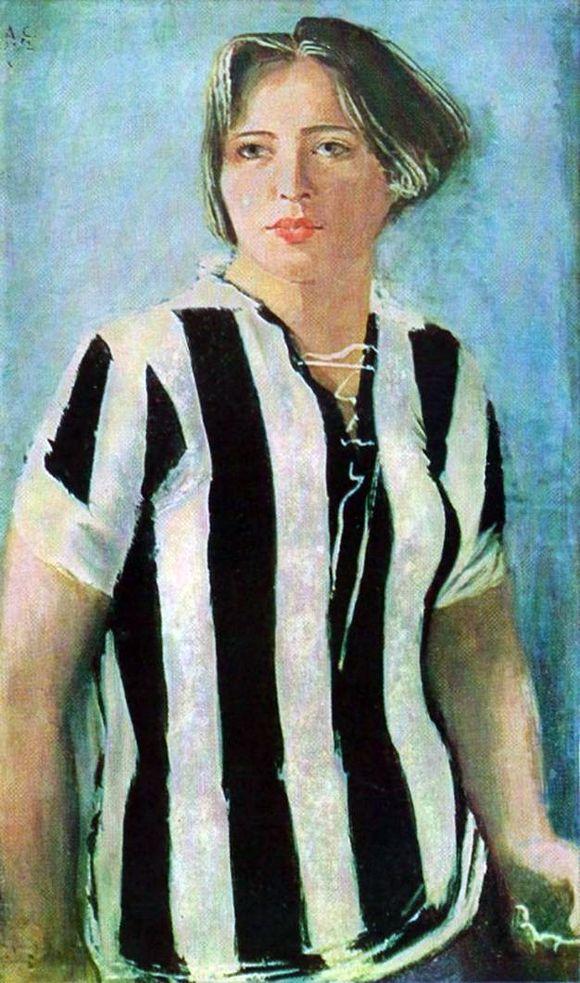 Несмотря на то, что советское искусство создавалось для внутреннего потребления, некоторые его образцы не оставили равнодушными жителей других стран. Например, Европу поразила картина «Девушка в футболке». Этот портрет революционен стилем одежды, в котором героиня представлена. Форменный, простите, unisex. Она удостоилась золотой медали на Международной выставке в Париже в 1937 г. и получила неофициальное название «советской Джоконды»