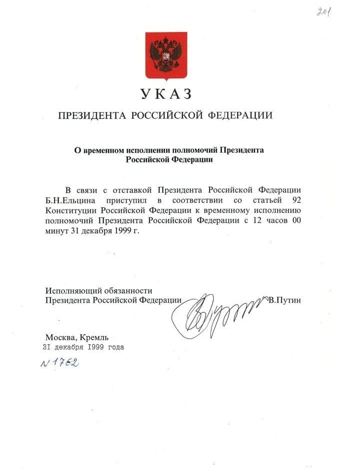 Но! Многие знают, читали и видят в системе Указ Путина от 31.12.99 г., который наши «граждане-мазурики» тоже держат в уме, но в Указе - не спасение, а скорее колоссальная засада. Дело в том, что после 01.07.2000 г нет у нас никакого президента В. Путина и все его решения, указы, награды, звания и подписи —ничтожны! С 01.07. 2000 года по сию пору!